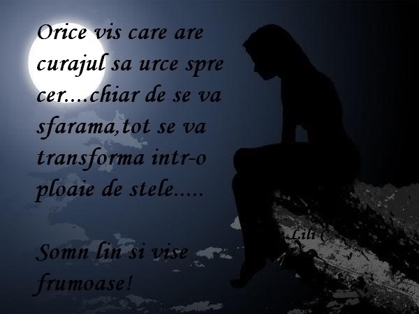Prezentul sa-l traiesti cu invataturile din trecut si cu visele din viitor...! Noapte buna.!